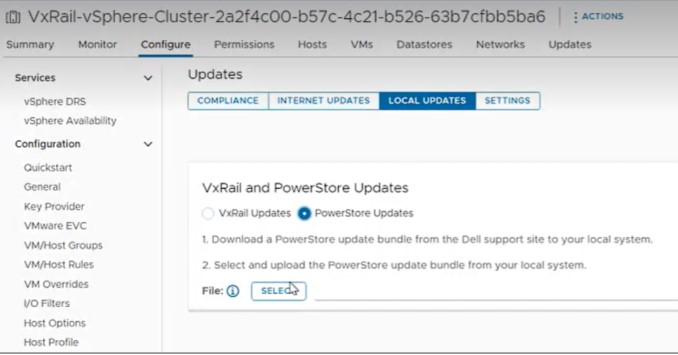Dynamic AppsON çözümü, birincil depolama kaynağı olarak PowerStore T dizisini kullanan bir VxRail dinamik düğüm kümesine atıfta bulunur. VxRail, bu yapılandırma için özel bir entegrasyon eklemiştir, böylece VxRail kullanıcıları PowerStore LCM (Yaşam Döngüsü Yönetimi) işlemlerini VxRail Yöneticisi’nden başlatabilir. VxRail kullanıcıları, PowerStore güncelleme paketini yükleyebilir, sağlık kontrolü yapabilir ve VxRail Yöneticisi kullanıcı arayüzünden bir güncelleme başlatabilir. Bu ayırt edici yetenek, bir Dynamic AppsON çözümünü yöneten VMware yöneticisini daha da güçlendirir. Bu entegrasyonla, VMware yöneticisi her iki ürünü de vCenter Server konsolundan yönetebilir, PowerStore’dan veri hizmetlerini sağlamak ve yönetmek için Virtual Storage Integrator eklentisini kullanabilir ve VxRail ile PowerStore LCM için VxRail Yöneticisi eklentisini kullanabilir.