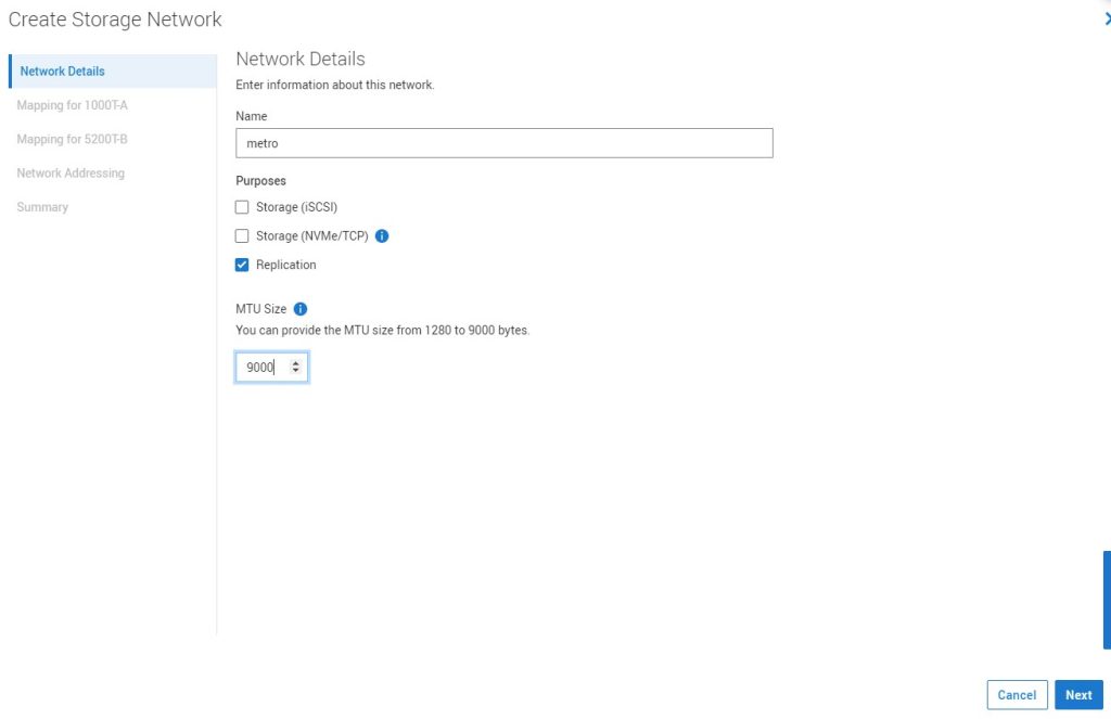 Settings > Networking > Network IPs bölümüne gidin ve burada replikasyon için bir Storage Network oluşturun.