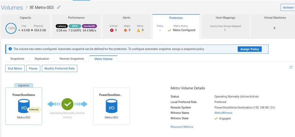 Metro Volume’un yönetimi, PowerStore’un entegre ve kullanıcı dostu yönetim arayüzü sayesinde son derece basittir. Yöneticiler, Metro Volume yapılandırmasını ve performansını kolayca izleyebilir ve kontrol edebilirler. Bu, yönetimsel yükü azaltırken aynı zamanda veri yönetiminin sorunsuz bir şekilde sürdürülmesine olanak tanır.