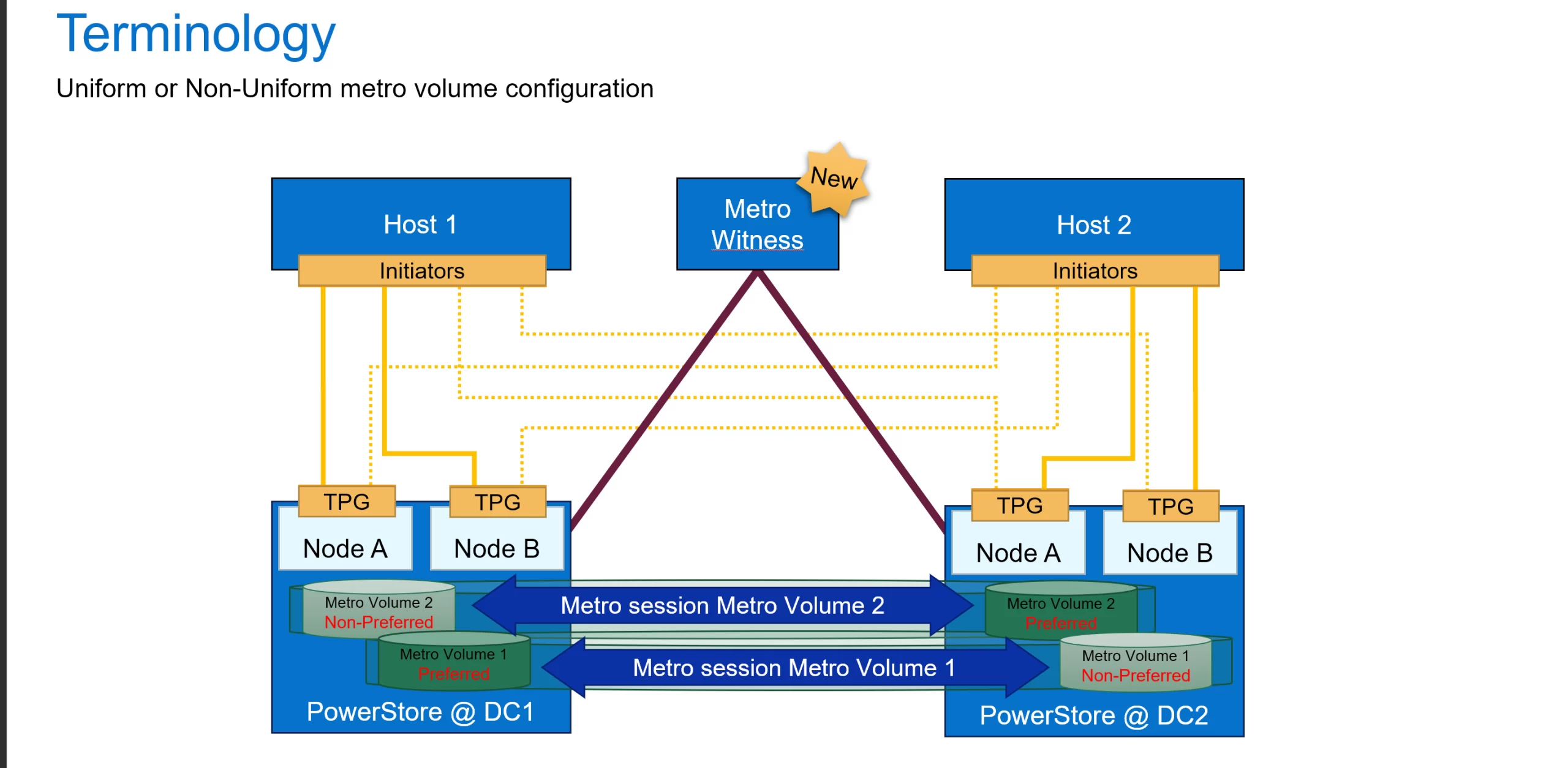 PowerStore Metro Volume, sunucuların iki farklı PowerStore sistemiyle kesintisiz bağlantı kurmasını sağlayarak yüksek erişilebilirlik sunar. Host connectivity (sunucu bağlantısı), veri merkezleri arasında iş sürekliliğini ve performansı koruyan önemli bir bileşendir.