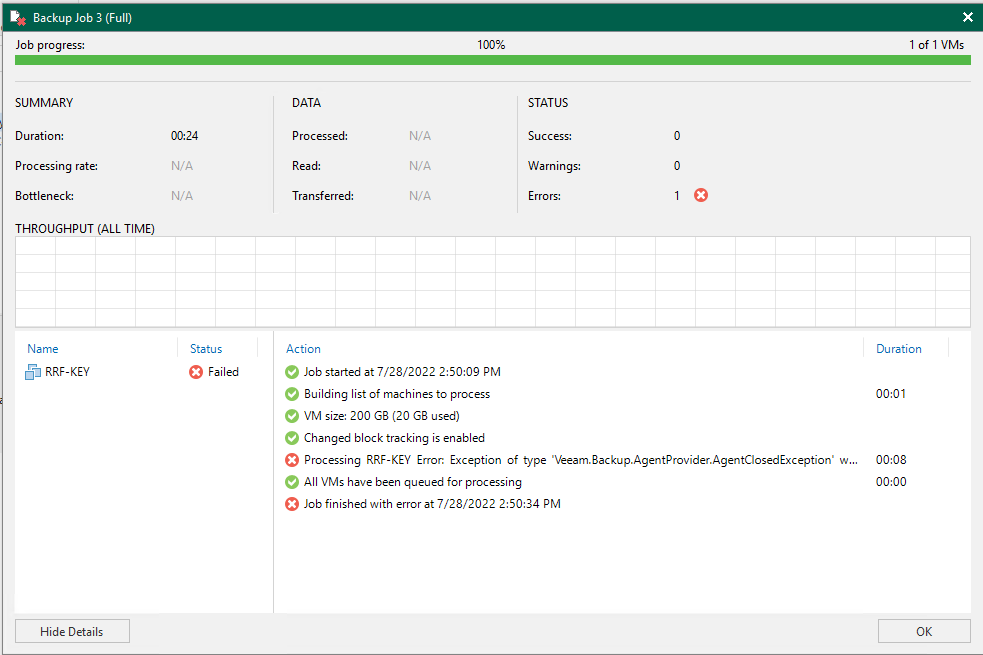 Data Domain DDBoost ile Veeam üzerinden backup alırken aldığınız hata Veeam.Backup.AgentProvider.AgentClosedException alabilirisiniz.